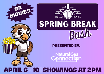 Spend Spring Break at The Eagle Theatre with Spring Break Bash Movies on April 6–10. Enjoy family-friendly films every day