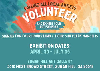 Looking to display your artwork? The Sugar Hill Arts Commission is seeking volunteers for the Sugar Hill Art Gallery. Artists must sign up to volunteer