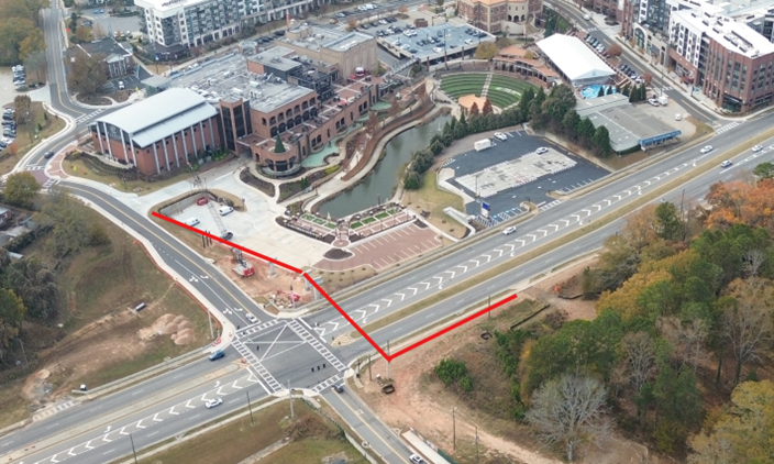 Downtown Greenway/LCI Project The trail connection from Highway 20 at PIB to the downtown pedestrian bridge and is funded by the LCI (Livable Centers Initiative) program administered by Georgia DOT. Since this project is funded by a grant from the Federal Highway Administration via LCI/GDOT, the process is a little different. The design firm was selected in coordination with GDOT. The project will provide an urban greenway connection from PIB/20 to Alton Tucker and then back to Highway 20. The timeline for construction and final alignment will be determined once we have the design finished. A design contract has been finalized with Keck & Wood. Work on an alternatives analysis is underway and several are being proposed for consideration by GDOT and the project management team.