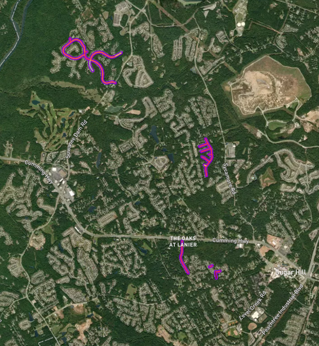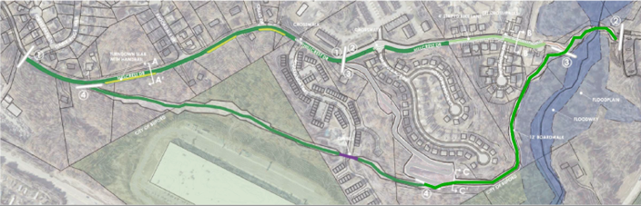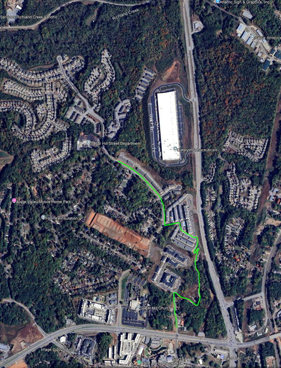 Northside Greenway As part of their developments, Novare Sugar Hill, The Refinery by Prestwick and Hillcrest Landing have constructed segments of the Greenway to the North of Hwy 20 and along Hillcrest Dr. This will consist of a winding segment from Stanley St. through their developments and connecting to the sidewalk on Hillcrest Dr. at Brookdale Dr. Solar lighting was recently installed on the Novare portion and is complete. Staff recently explored an area north of this to determine the feasibility of winding the trail through the woods to Richland Creek. We are working with the design team to come up with a cost-effective and efficient route. Design work is now underway with the alignment selected. We also have begun discussions for easements and ROW for the trail.