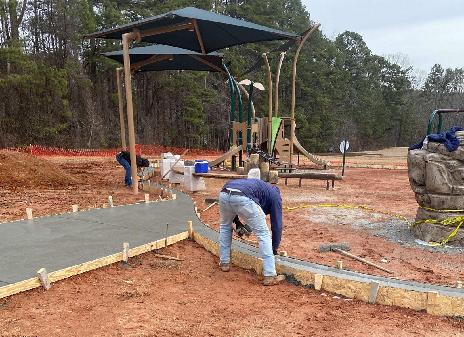 Ridge Lake Park Phase 2 (Playground) An RFP package was issued to find a partner to Design/Build the playground. Proposals were received on August 7 and Playground Creations was selected to design and build it. A design was approved and the equipment was ordered. The apparatus arrived in December and layout work has begun. Installation is well underway. Most of the equipment is in and the ribbon curb around the playground is poured. Surfacing should begin in the next two weeks, weather permitting.