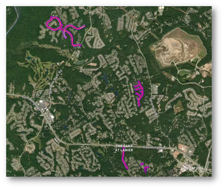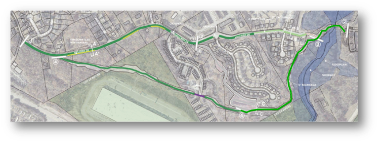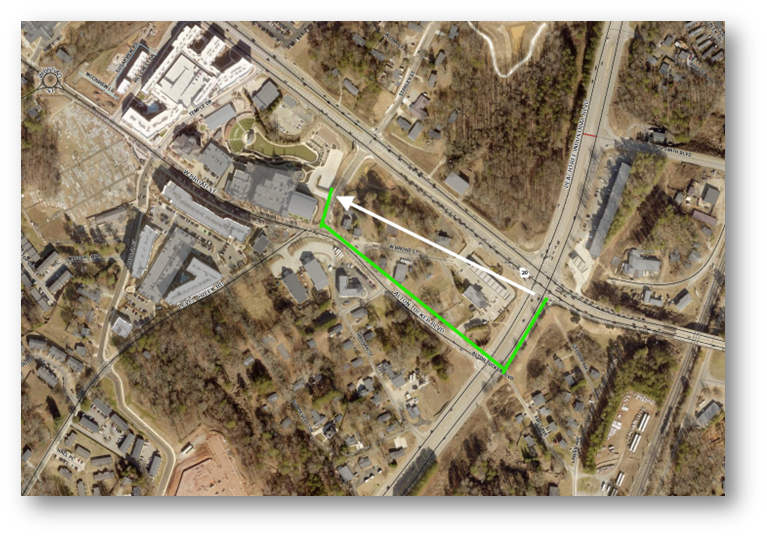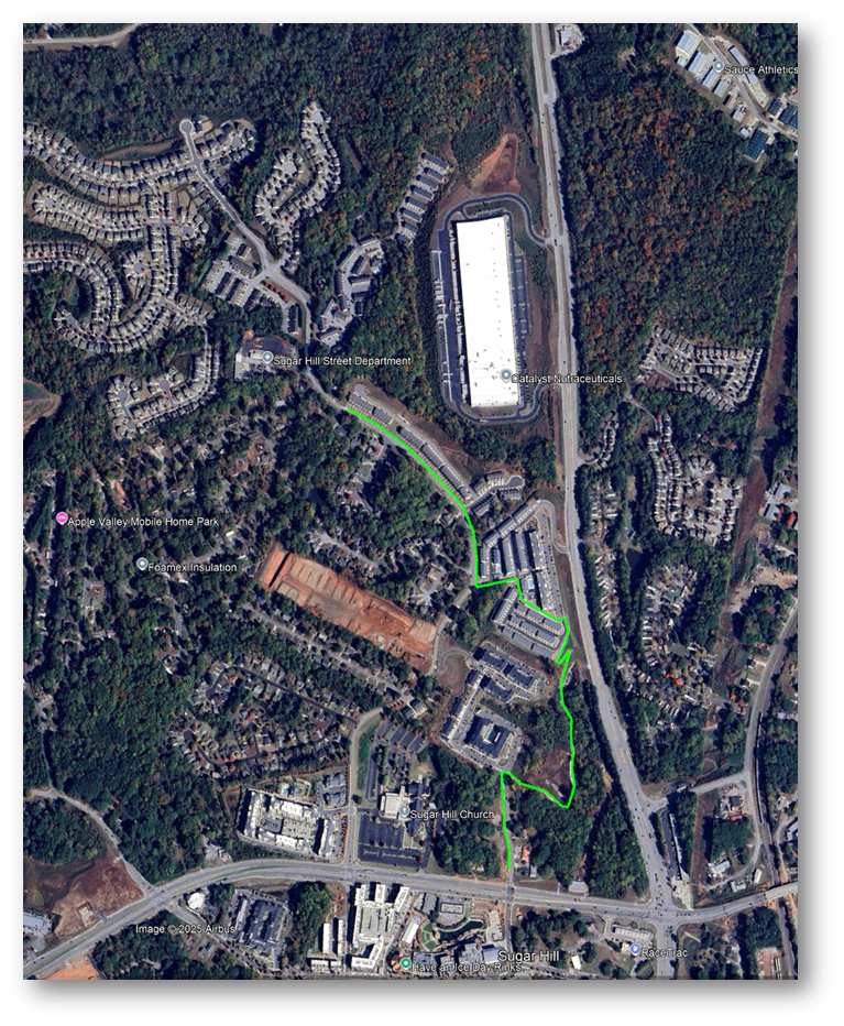 As part of their developments, Novare Sugar Hill, The Refinery by Prestwick and Hillcrest Landing are constructing segments of the Greenway to the North of Hwy 20 and along Hillcrest Dr. This will consist of a winding segment from Stanley St. through their developments and connecting to the sidewalk on Hillcrest Dr. at Brookdale Dr. Solar lighting was recently installed on the Novare portion and is complete. Staff recently explored an area north of this to determine the feasibility of winding the trail through the woods to Richland Creek. This proposed alignment looks promising. We are working with the design team to come up with a cost-effective and an efficient route. Design work is now underway with the alignment selected. We also have begun discussions for easements and ROW for the trail.