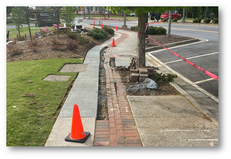 Work has begun to repair sidewalks in the Downtown area. Failing cement and mis-aligned brick pavers are being replaced and re-set. This project should be completed in two to three weeks.